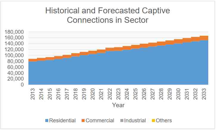 The number of 3,600 connections is expected to grow at a rate of 2.78% annually. Said customer class is expected to account for 90% of the total consumption.