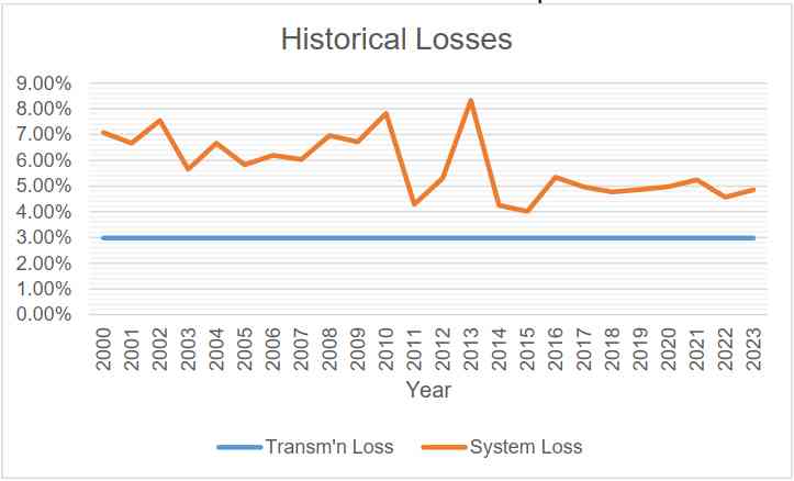 Historically, Transmission Loss is at 2.98%. System Loss ranged from 4.02% to 8.33%.