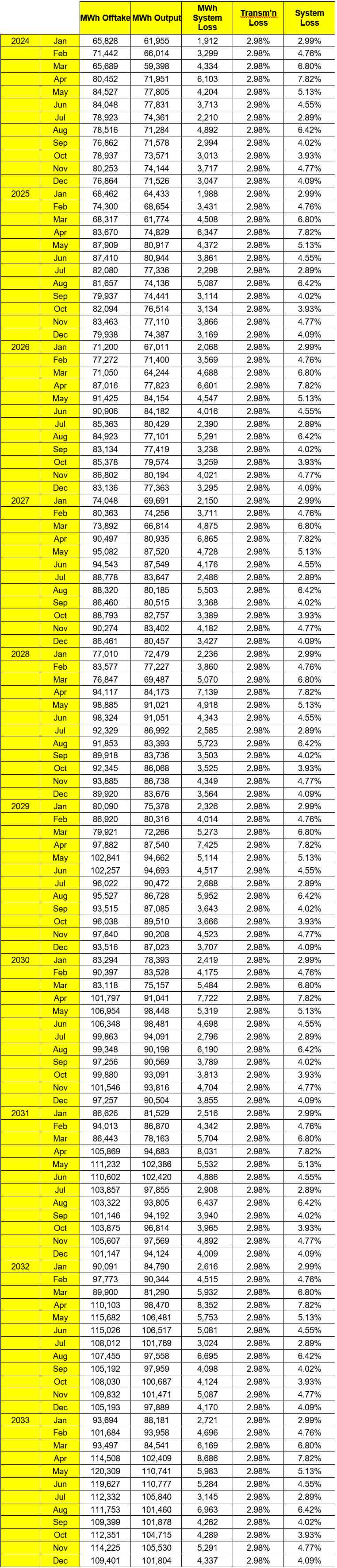 MWh Offtake was forecasted using historical average growth rate. The assumed load factor is 65%.