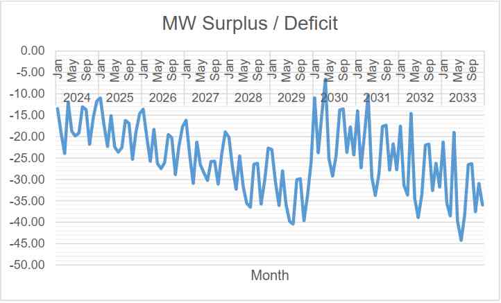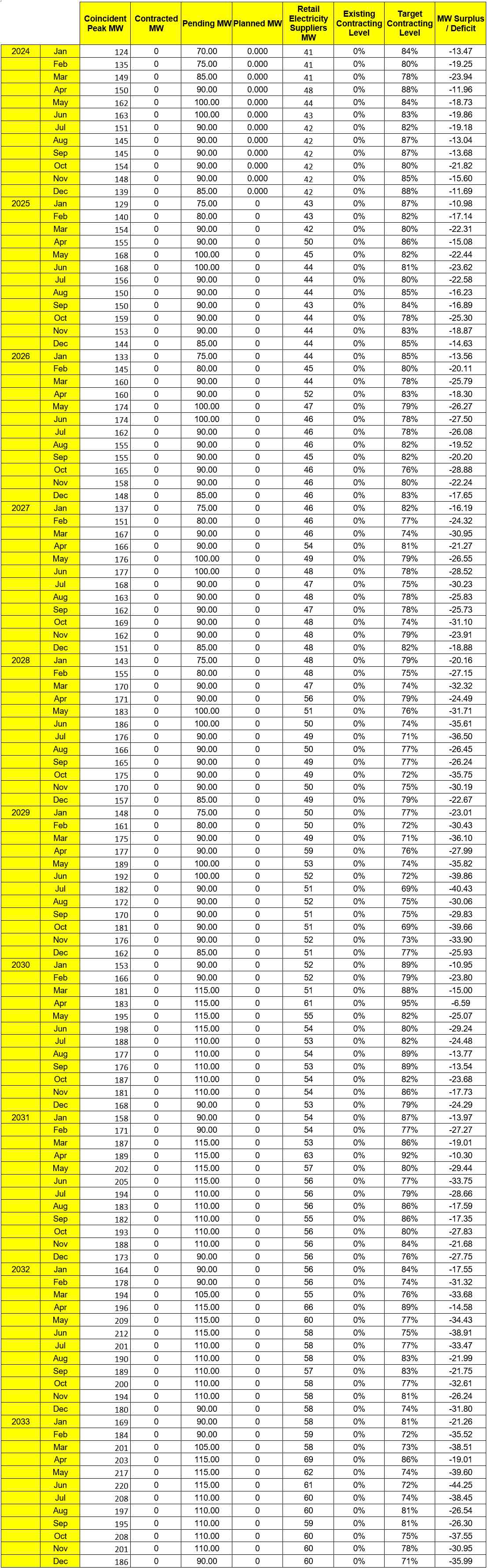 Currently, there is under-contacting by 35 MW. The highest deficit is 40 MW which is expected to occur on the month of September. The lowest deficit is 5 MW which is expected to occur on the month of May. The deficit will be bought from the WESM.