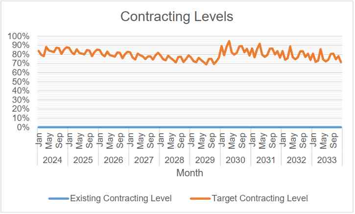 Currently, there is under-contracting 10-15%. The highest target contracting level is 90% which is expected to occur on 2030. The lowest target contracting level is 85% which is expected to occur on 2029.
